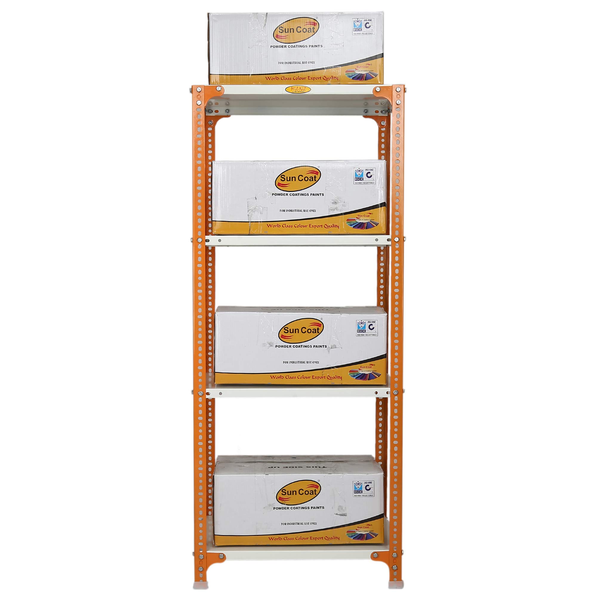 Mil-Nil Prime CRC Sheet 60X30X18 Inch Multipurpose Storage, Adjustable Shelf, Slotted Angle Rack with 4 Shelves 24 Gauge_Orange/Ivory 16 Gauge Angles