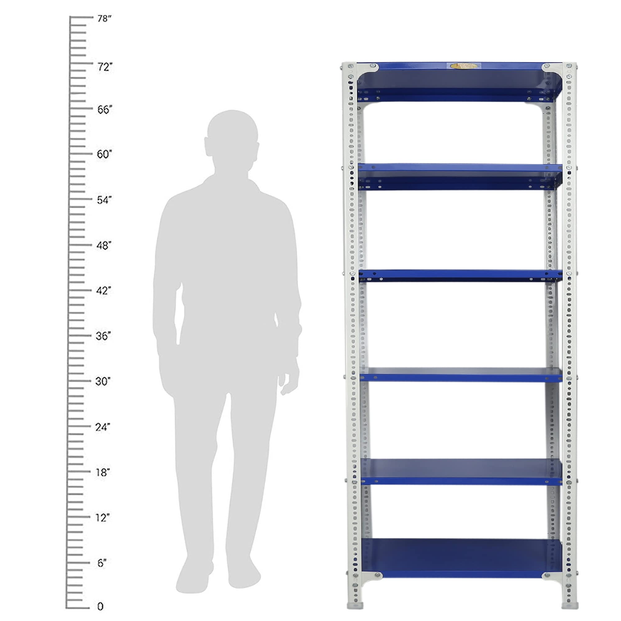 Item NameMil-Nil Prime CRC Sheet 72X24X18 Inch Multipurpose Storage, Adjustable Shelf, Slotted Angle Rack with 6 Shelves 24 Gauge_Blue/White 16 Gauge Angles