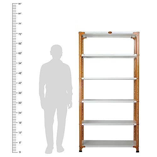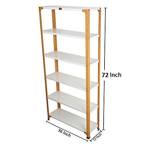Mil-Nil Prime CRC Sheet 72X36X12 Inch Multipurpose Storage, Adjustable Shelf, Slotted Angle Rack with 6 Shelves 18 Gauge_Orange/Ivory 14 Gauge Angles