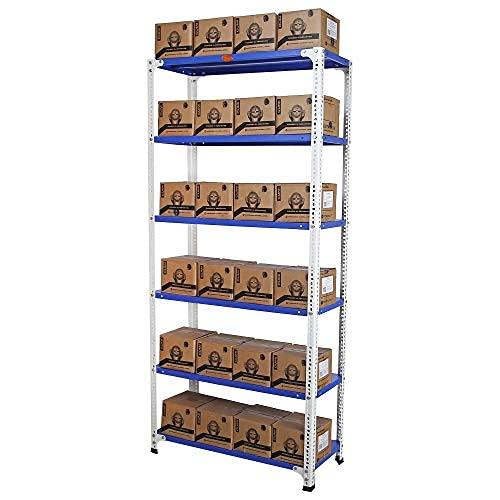 Mil-Nil Prime CRC Sheet 72X36X15 Inch Multipurpose Storage, Adjustable Shelf, Slotted Angle Rack with 6 Shelves 22 Gauge_Blue/White 16 Gauge Angles