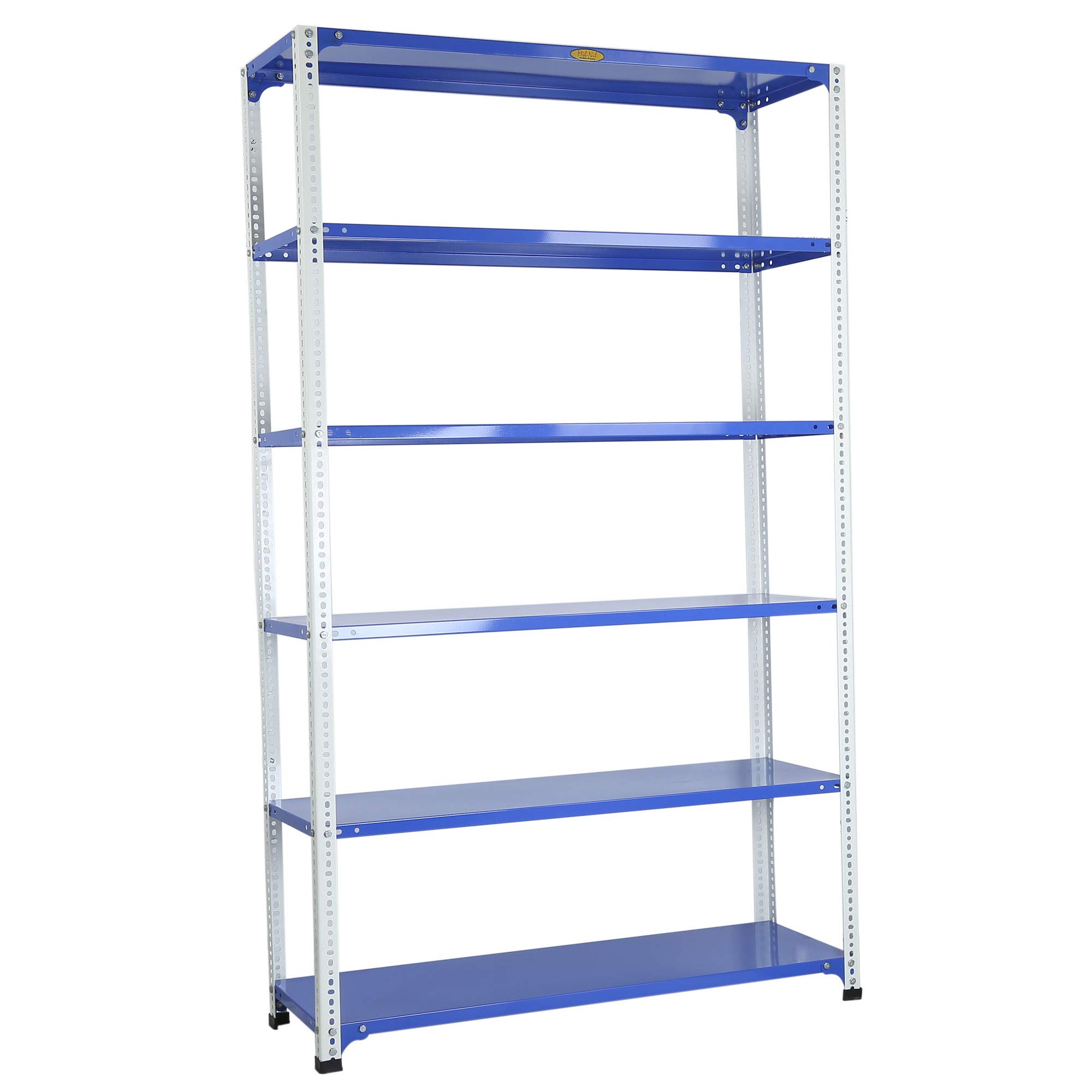 Item NameMil-Nil Prime CRC Sheet 72X36X15 Inch Multipurpose Storage, Adjustable Shelf, Slotted Angle Rack with 6 Shelves 22 Gauge_Blue/White 16 Gauge Angles
