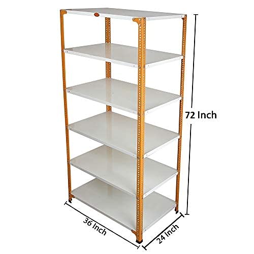 Mil-Nil Prime CRC Sheet 72X36X24 Inch Multipurpose Storage, Adjustable Shelf, Slotted Angle Rack with 6 Shelves 20 Gauge_Orange/Ivory 14 Gauge Angles