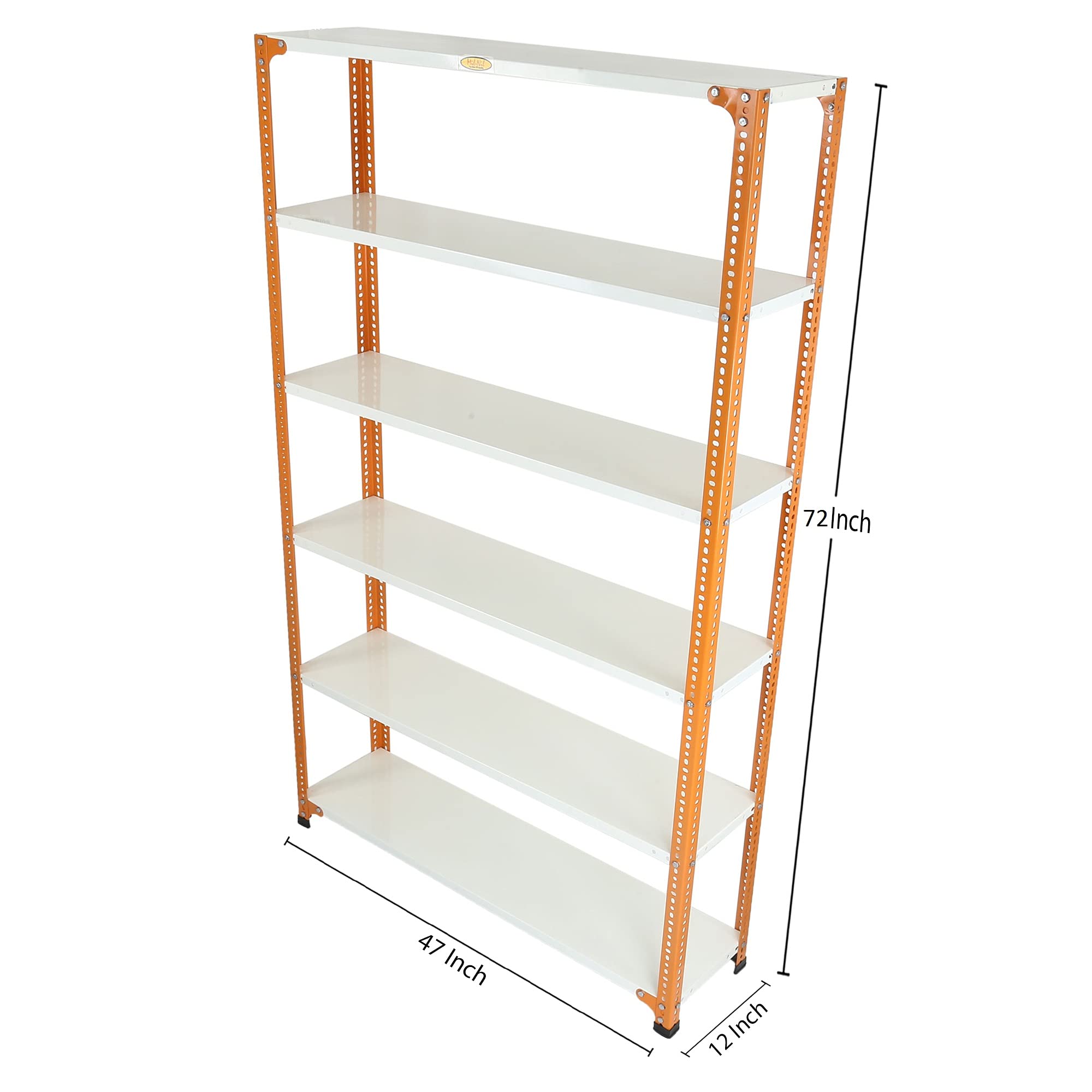 Item NameMil-Nil Prime CRC Sheet 72X47X12 Inch Multipurpose Storage, Adjustable Shelf, Slotted Angle Rack with 6 Shelves 24 Gauge_Orange/Ivory 16 Gauge Angles