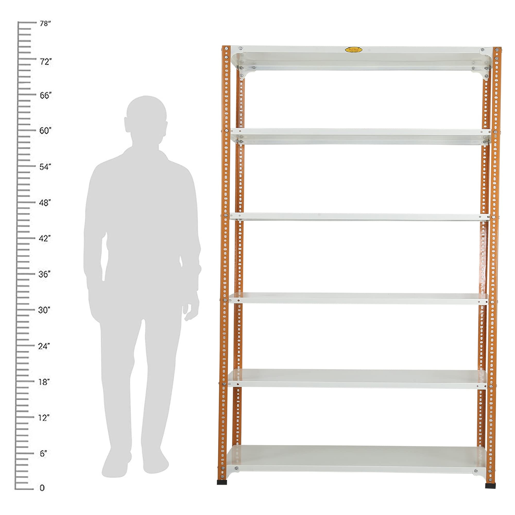 Item NameMil-Nil Prime CRC Sheet 72X47X18 Inch Multipurpose Storage, Adjustable Shelf, Slotted Angle Rack with 6 Shelves 22 Gauge_Orange/Ivory 16 Gauge Angles
